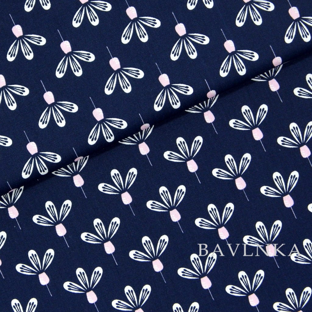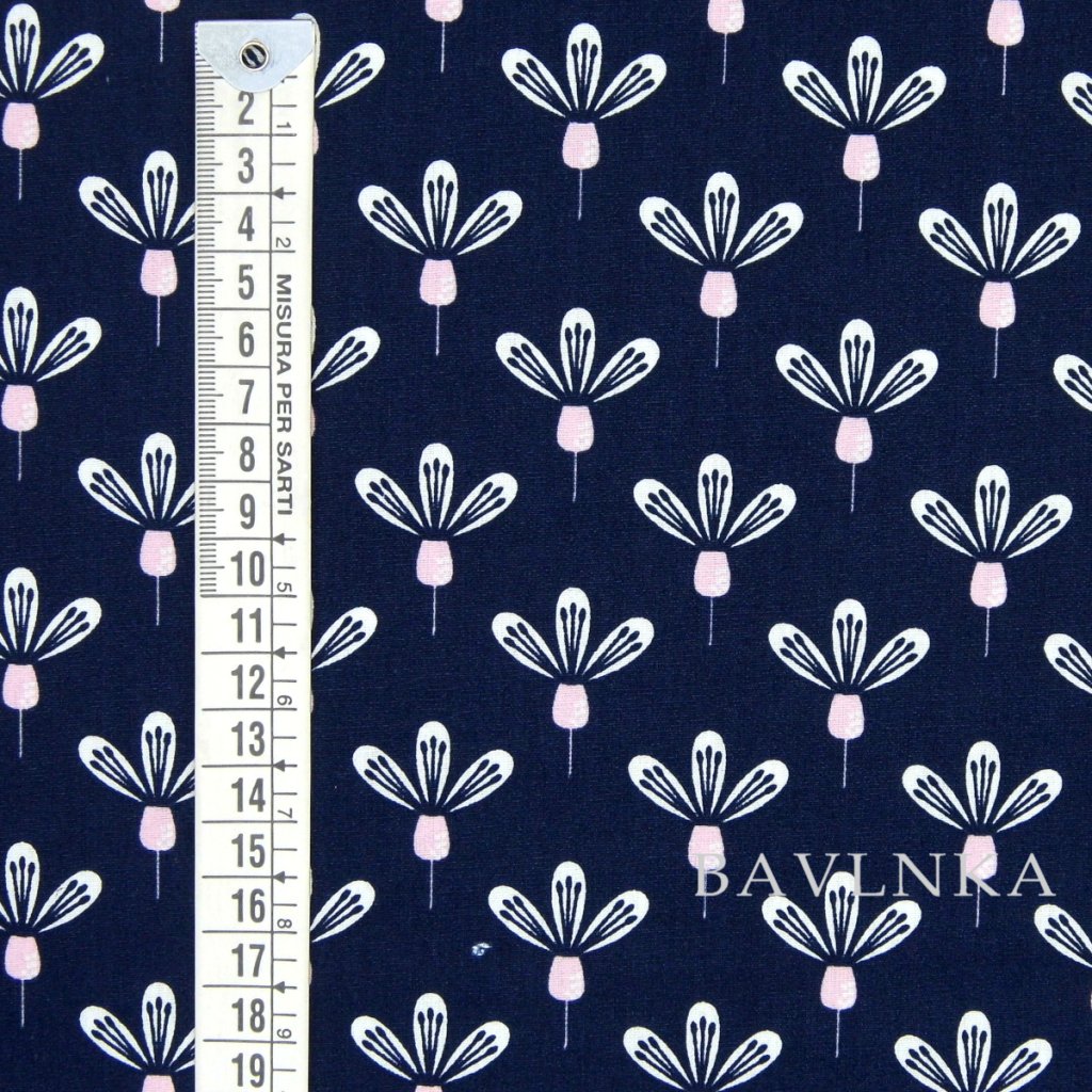 Jemný popelín so zaujímavými kvietkami na tmavomodrom podklade je vhodný napríklad na letné nohavice, blúzku, šaty, ale aj na vankúšiky, obliečky, obrus, závesy, rôzne dekorácie, patchwork, rúška, alebo jednoduchú tašku.