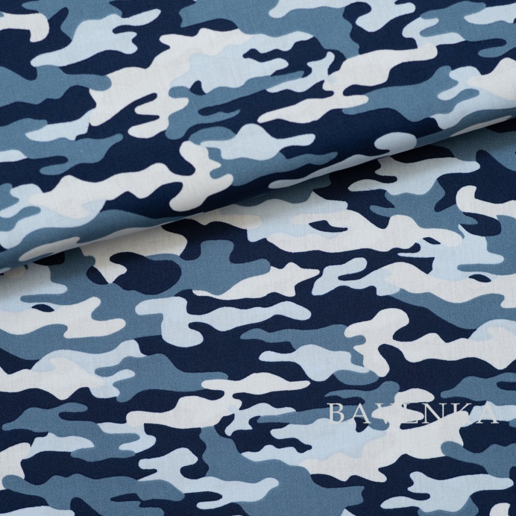 Bavlnená látka "maskáč modrý" je s nestarnúcim, trendovým, "maskáčovým" vzorom, a to v chladivom farebnom prevedení a je vhodná napríklad na vankúšiky, obliečky, obrusy, závesy, rôzne dekorácie, patchwork, rúška, jednoduchú tašku, alebo aj rôzne druhy oblečenia.