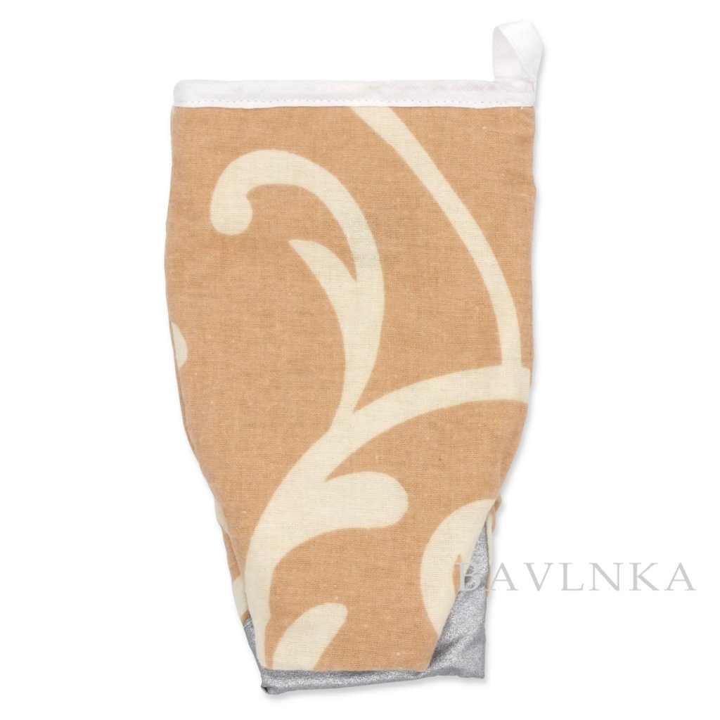 Kuchynská rukavica - chňapka, známa aj ako žaba je s praktickým magnetom a ochrannou teflónovou vrstvou. Rukavica je béžovej farby s bielym ornamentom a je vhodná aj ako skvelý darček, ktorý určite poteší.