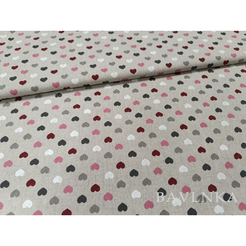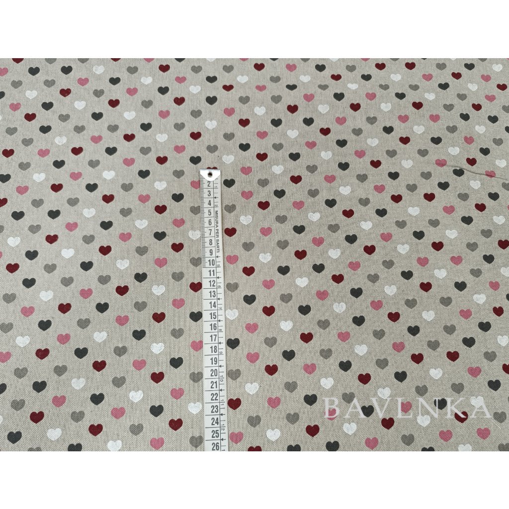 Dekoračná látka farebné srdiečka na béžovom podklade je vhodná napríklad na rôzne dekorácie, patchwork, vankúšiky, obliečky, obrusy, závesy, ale aj na oblečenie, alebo jednoduchú sezónnu tašku.