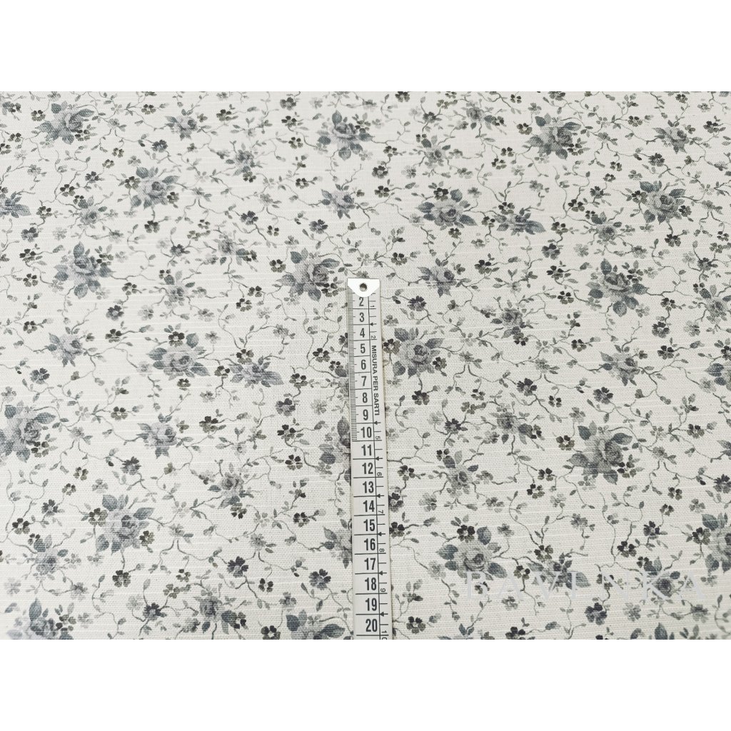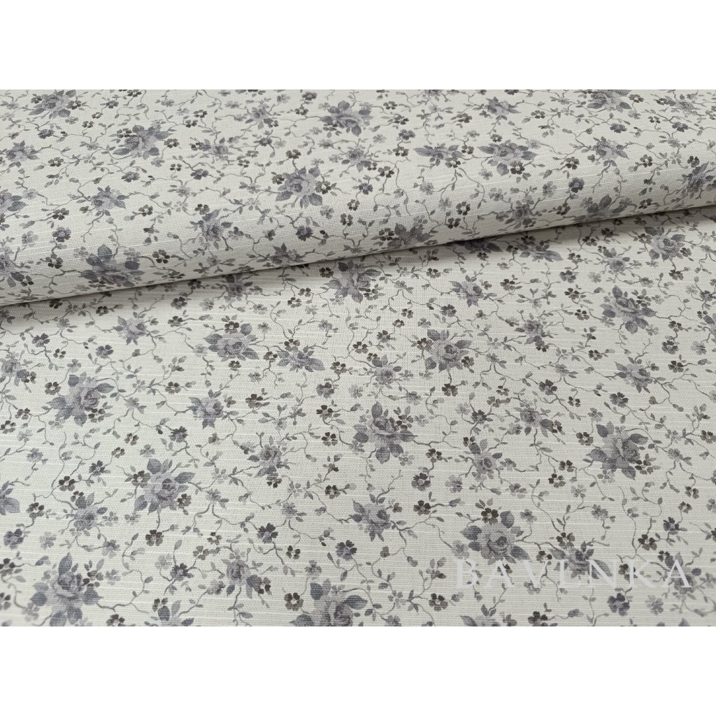 Dekoračná látka s nežnými, sivými ružičkami je v nežnej, prírodnej farebnej kombinácii a je vhodná napríklad na rôzne dekorácie, patchwork, vankúšiky, obliečky, obrusy, závesy, ale aj na rôzne doplnky alebo jednoduchú sezónnu tašku.
