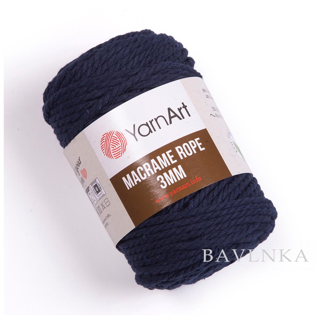 Macrame Rope je obľúbená šnúrková priadza s hrúbkou 3 mm a pripomína točený motúzik alebo špagát. Macrame Rope 3 MM 784 je elegantnej tmavomodrej farby a je vhodná napríklad na makramé alebo pletenie či háčkovanie tašiek, kabeliek, batohov, pufov, košíkov, koberčekov, alebo na kreatívnu tvorbu bytových doplnkov a iných dekorácií. Táto priadza je vhodná aj na rozčesávanie.